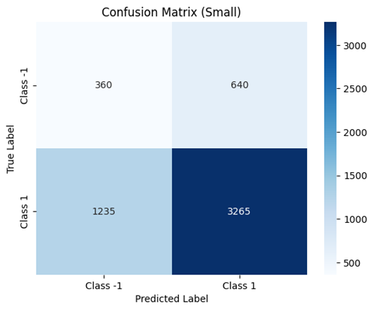 | Small (outlier class) | 0.63 | 0.24 | 0.35 |
