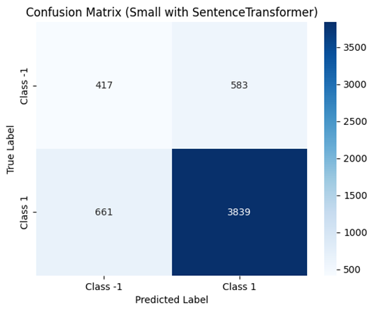 11. ábra: Tévesztési mátrix a small adatbázis eredményei alapján Sentence Transformer használatával